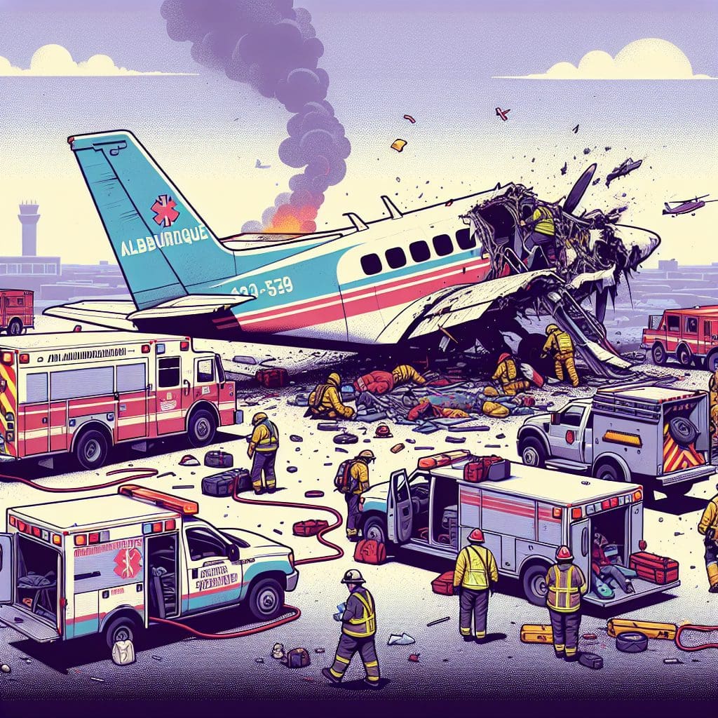 A small aircraft accident in Albuquerque has resulted in one fatality and left another individual in critical condition. The crash occurred recently during a routine flight, causing the aircraft to plunge shortly after takeoff. Emergency responders swiftly arrived at the scene, where they found one occupant deceased and another severely injured. The injured person was rushed to a local hospital for urgent medical care. Investigations by aviation authorities are underway to determine the cause of the accident, with preliminary reports suggesting potential issues with the aircraft before takeoff. Witnesses reported hearing an unusual noise shortly before the plane descended. The tragedy has shocked the local community, where residents are mourning the loss and offering prayers for the surviving passenger. Details about the victims have yet to be released, and officials are working to notify their families. Further updates will follow as the investigation progresses.